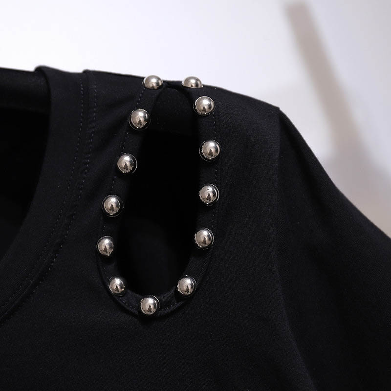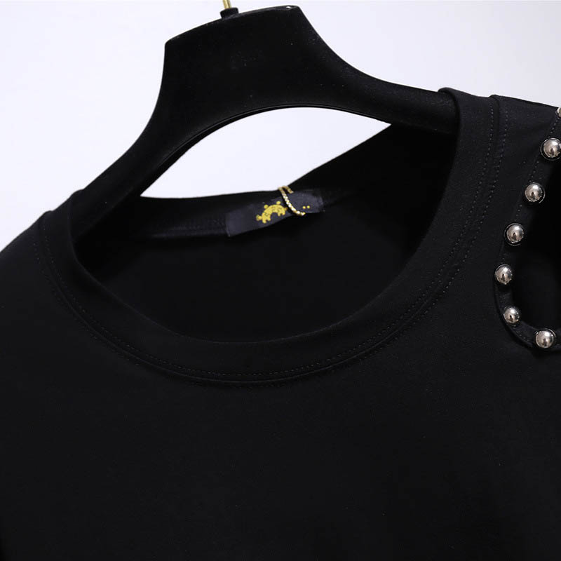 150Kg Plus Size Women's Summer Loose Rivet Hole Short-Sleeved T-Shirt Bust 157cm 6XL 7XL 8XL 9XL 10XL Round Neck Top Black Gray