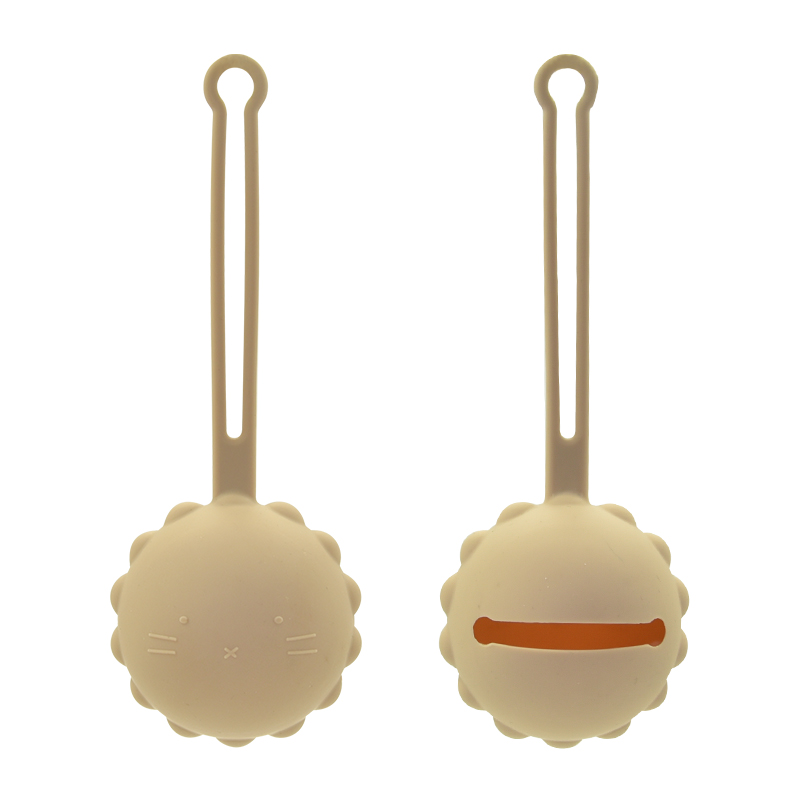 2 Made from a soft silicone with a convenient strap, this pacifier case is easy to attach to a stroller or diaper bag.