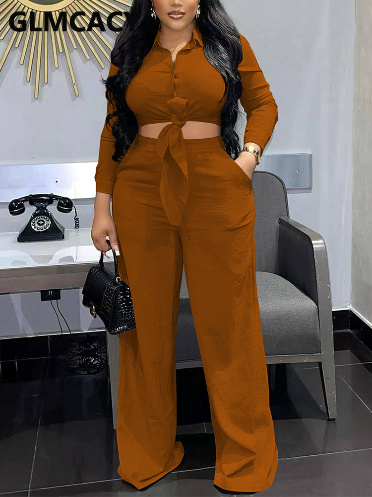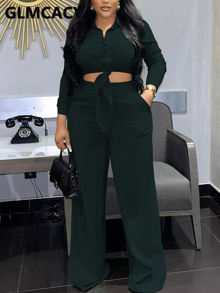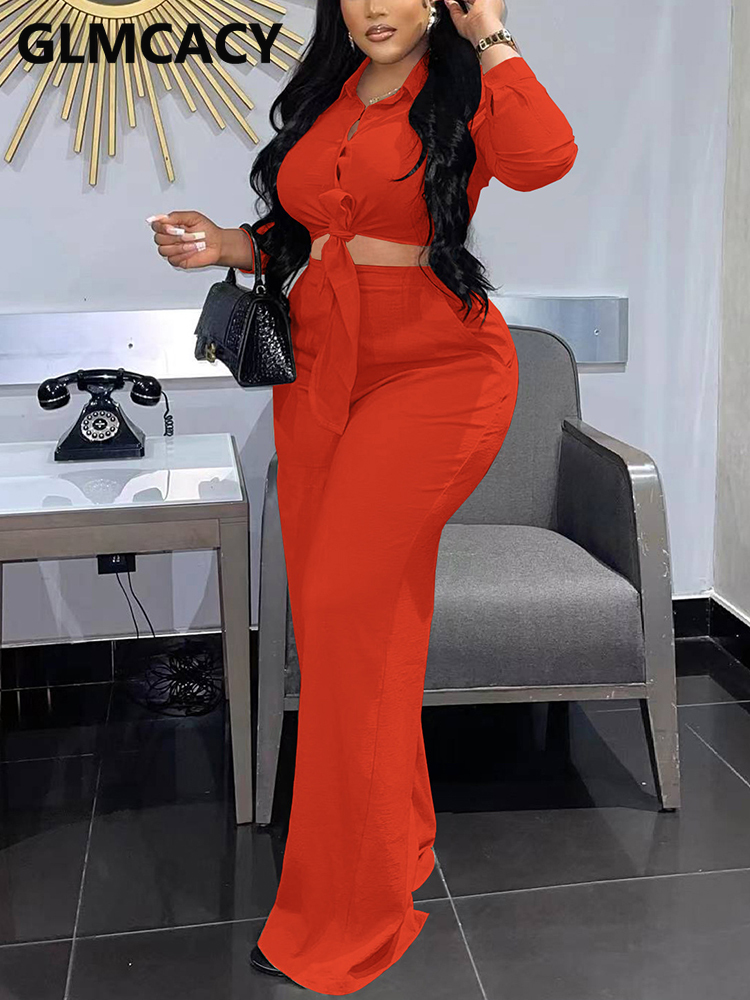 2 Pieces Pants Sets Women Long Sleeve Shirt & Wide Leg Casual Pants