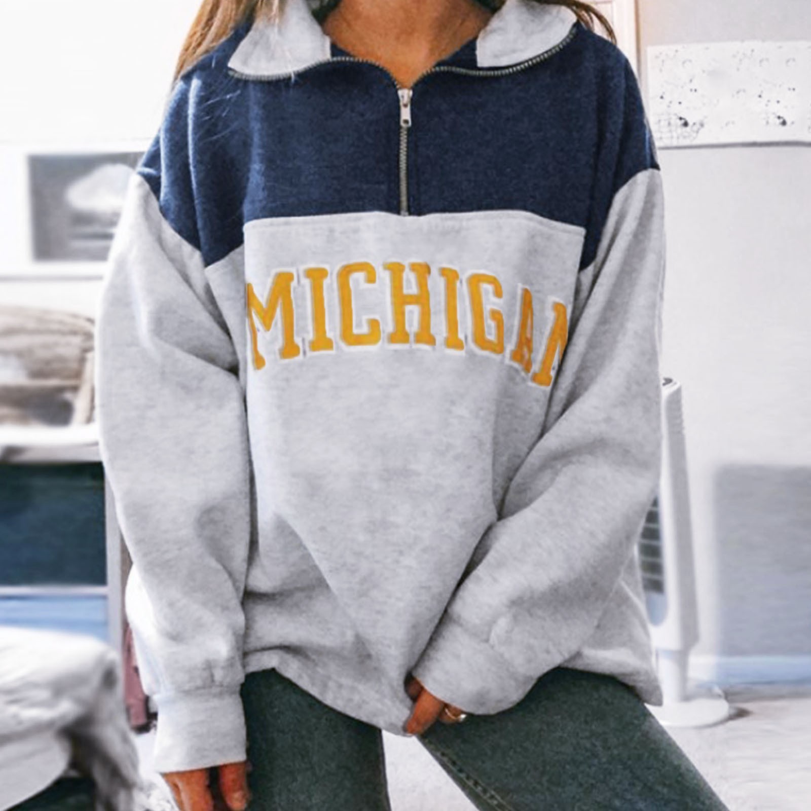 Women's Casual Long Sleeve Printed Zipper Printed Long Sleeve Tops Sweatshirts