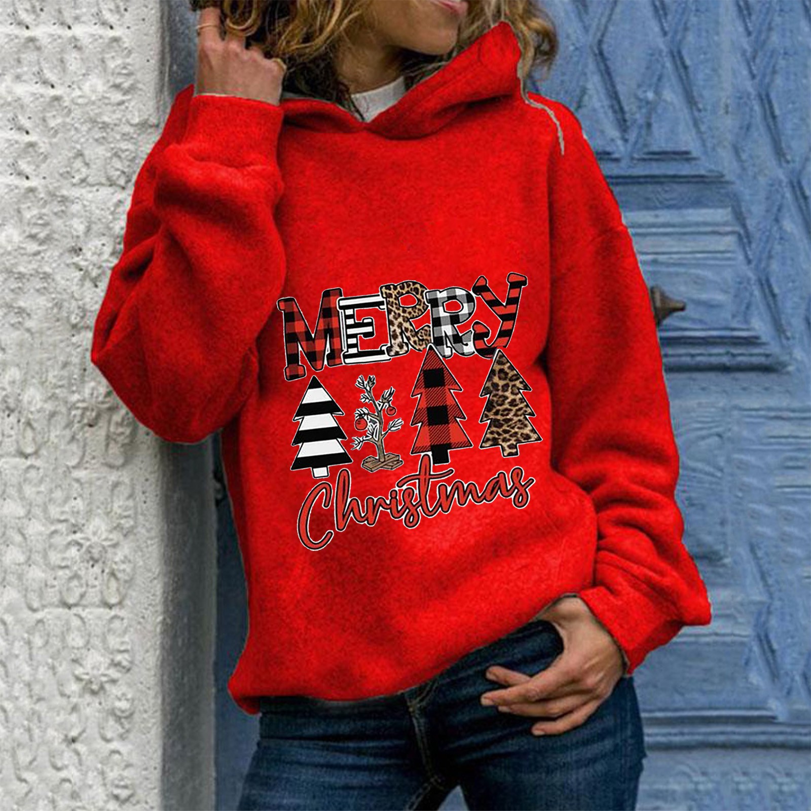 Fashion Womens Casual Round Neck Long Sleeve Print Loose Pullover Hoodie