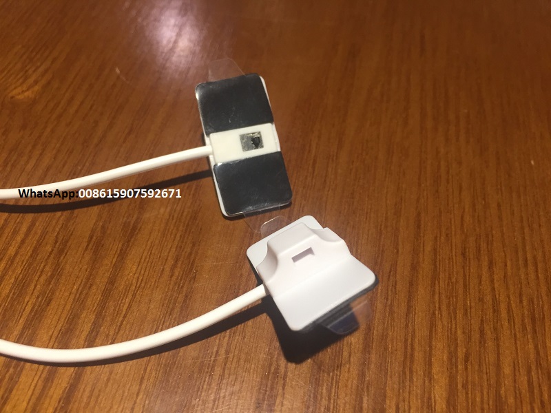 .one end is usb port .the other end is a flexible alarm sensor sticker . this small alarm sensor ( double sided adhesive tape ) can paste to any product ,like power bank/bluetooth speakers/Mp3/laptop/keyboard/camera...