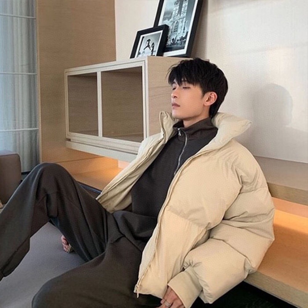 Ah yuan down cotton suit men's bubble cotton suit, casual solid color standing collar men's winter warm cotton suit