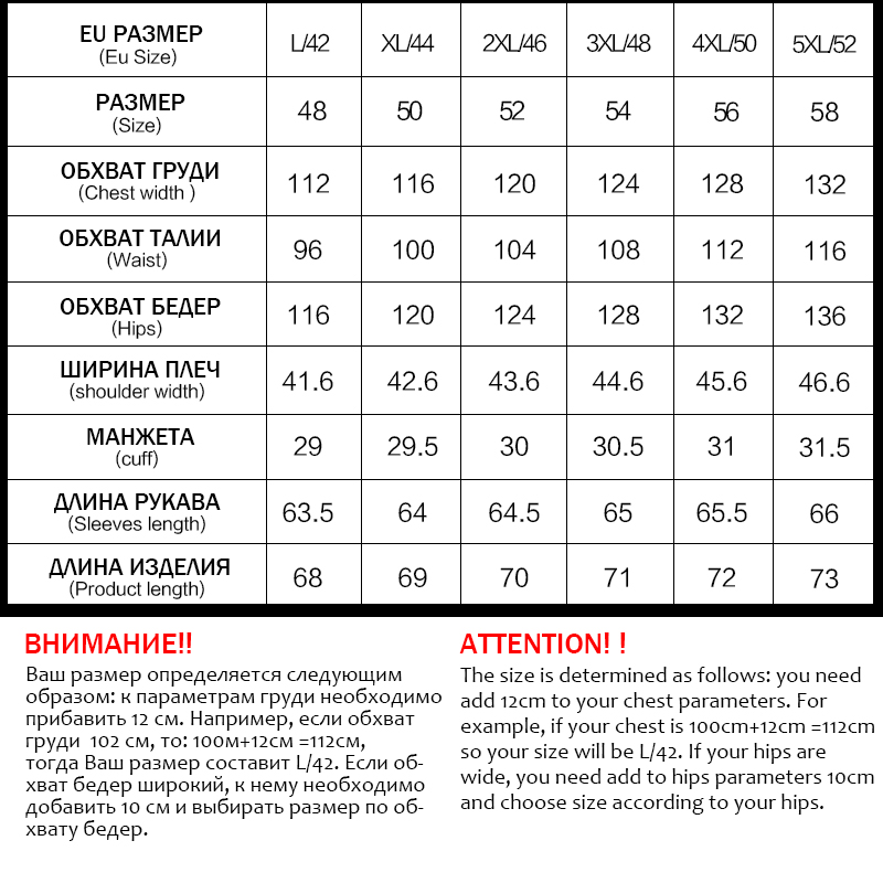 RU Size : 48 50 52 54 56 58