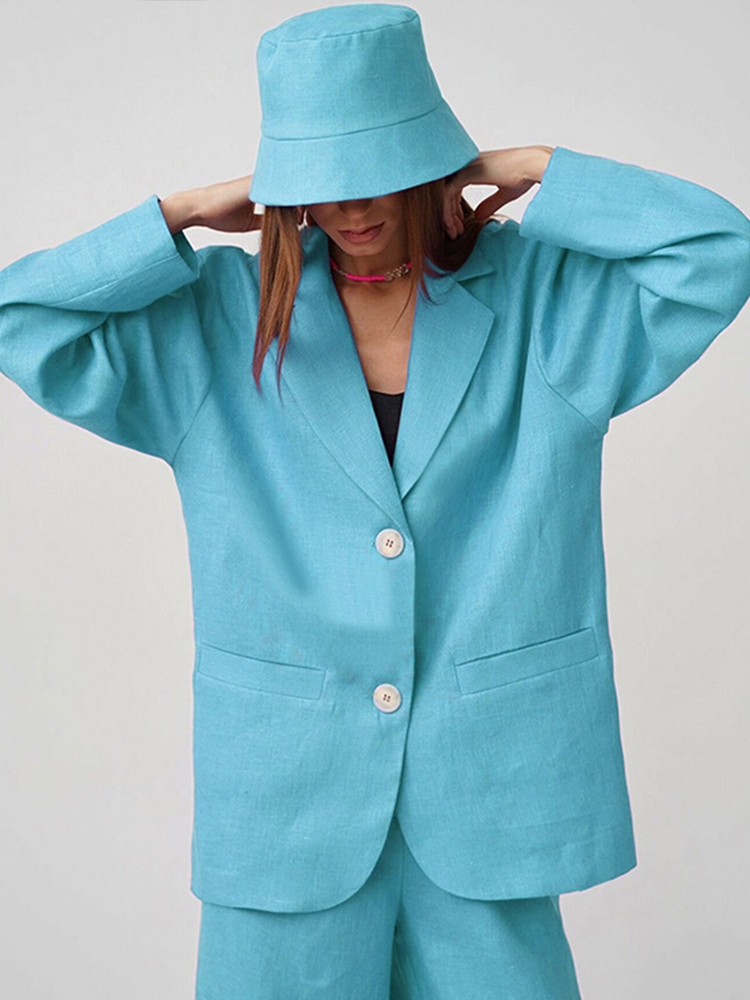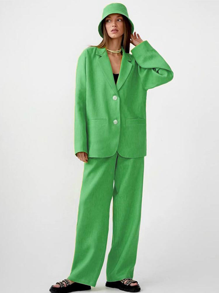 Autumn Green Blazer Pants 2 Pieces Sets Women Casual Long Sleeve Jacket Suits Loose High Waist Wide Leg Trousers Outfits