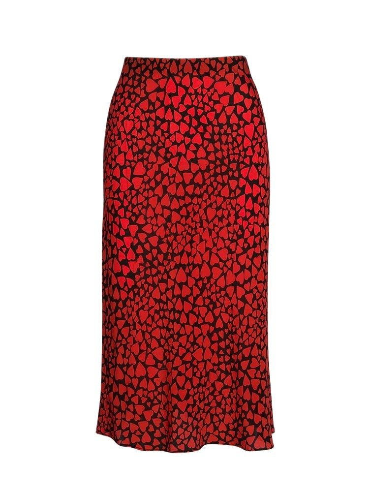 BBWM WOMAN French Style Small daisy Heart Leopard Print Silk Trumpet Skirts Vintage Chic Women Summer Casual Slim Waist Skirt