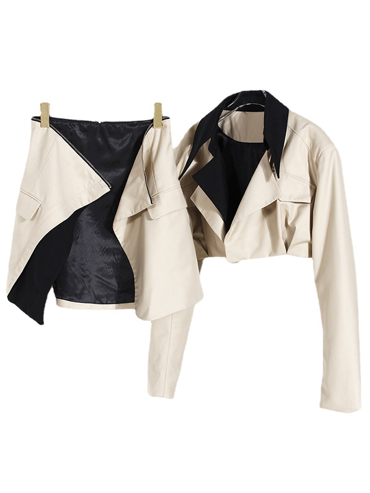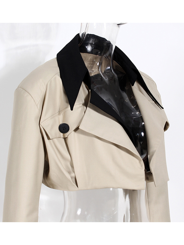 [EAM] Loose Fit Khaki Two Ways Wear Irregular Jacket Lapel Long Sleeve Women Coat Tide Spring Autumn 1DE7081