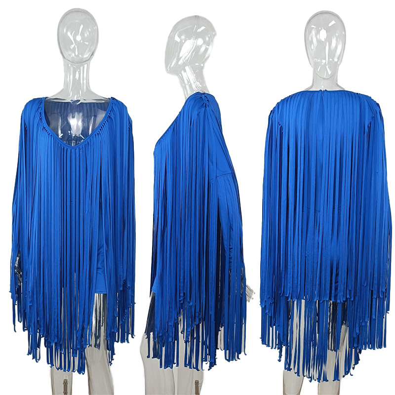 Elegant Long Tassel Chic Evening Party Maxi Dress Women Vestidos Sexy V Neck Full Sleeve Cape Gown Club Dresses Outfit Y2k Robe