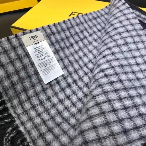 This timelessly elegant and luxurious Fendi scarf in soft wool and cashmere with Fendi Roma oversized lettering, lined with checked motif. Fringed hem, Its long, narrow shape enables it to be worn in many different ways.