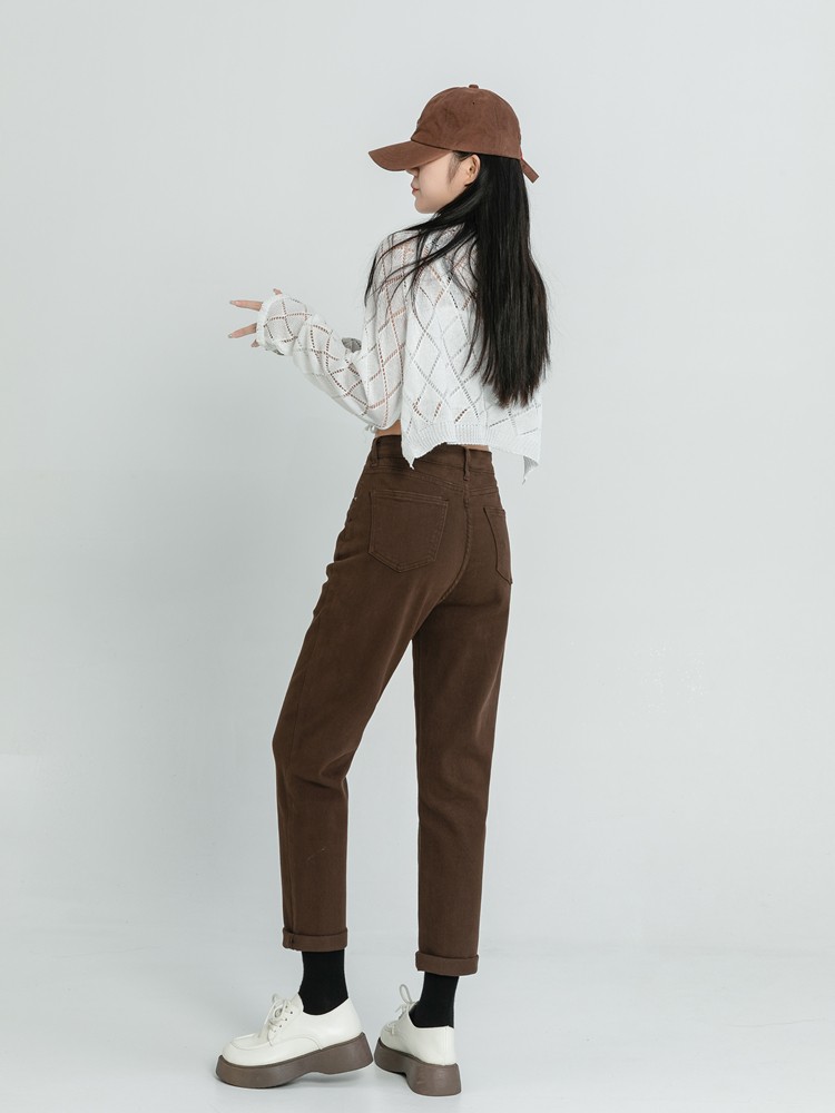GUUZYUVIZ High Waist Elastic Denim Harem Pants Ladies Casual Vintage Wash Jeans Women Autumn Winter Brown Mom Jean Femme