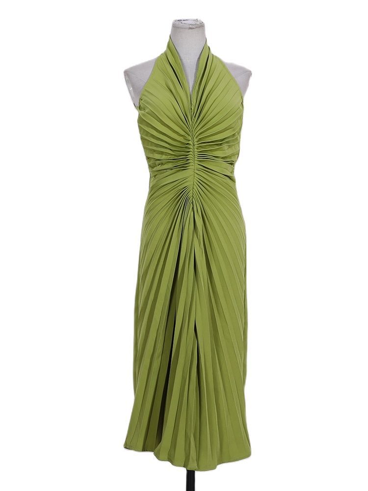 GVUW Pleated V-neck Split Skinny Dress Women Elegant Sleeveless Solid Color Summer Female Wedding Party Clothing 17D1301