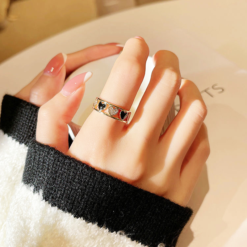 Goods : Korean ins trendy heart-shaped combination ring for men and women personality simple black love hollowed out adjustable