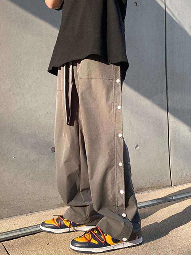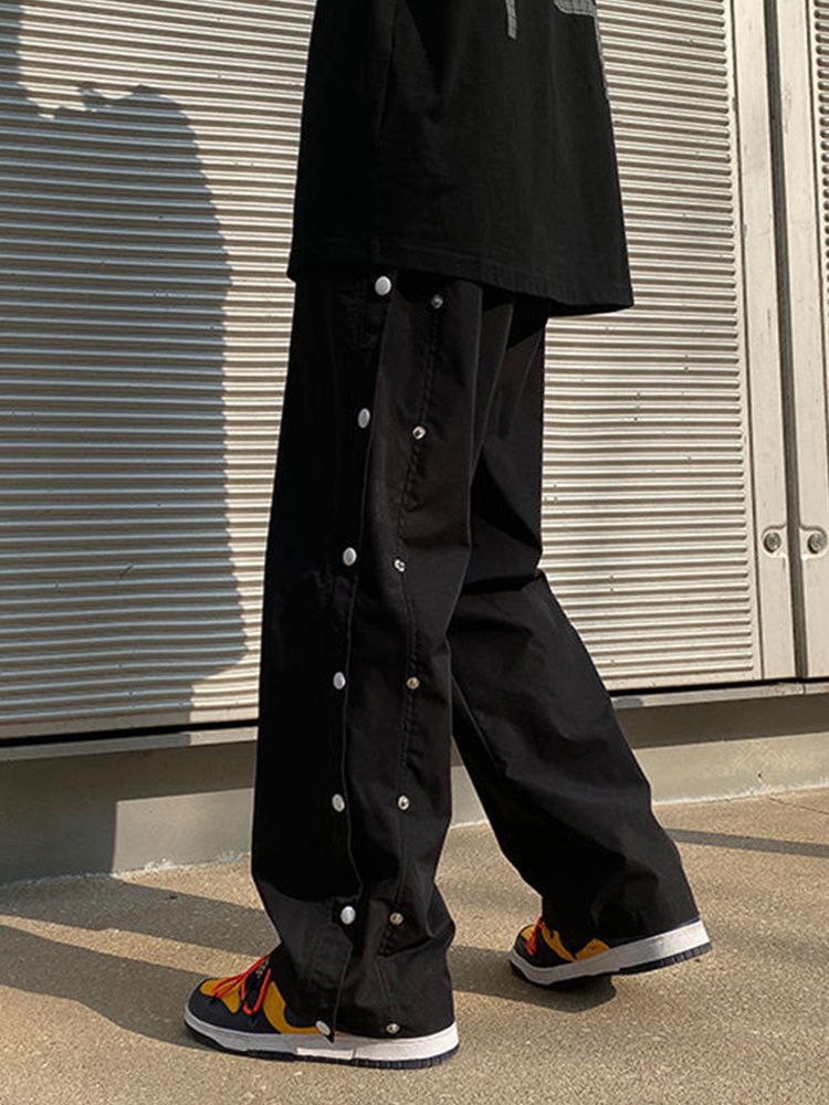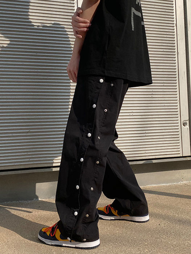 Goth Punk Men Pants Button Up Baggy Pants Black High Waist Wide Leg Pant Straight Trousers Baggy Hip Hop Cargo Casual Bottoms
