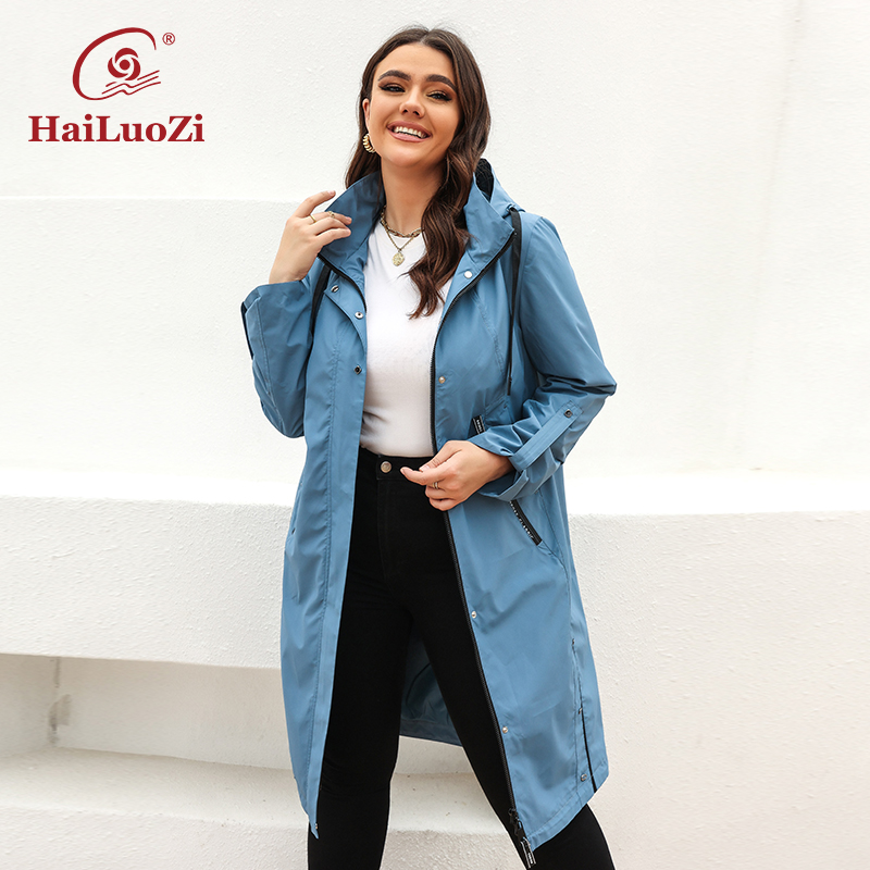 HaiLuoZi Women's Spring Coat High Mid-Length Plus Size Women Jacket Casual Hooded Windproof Outwear 9722