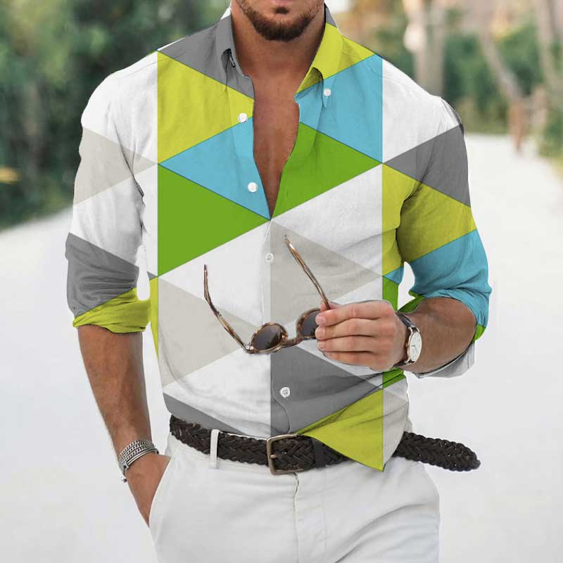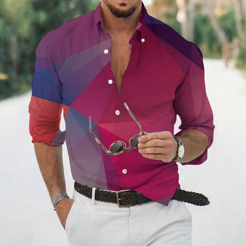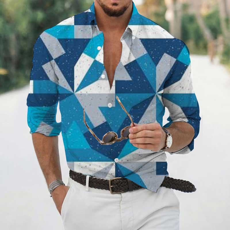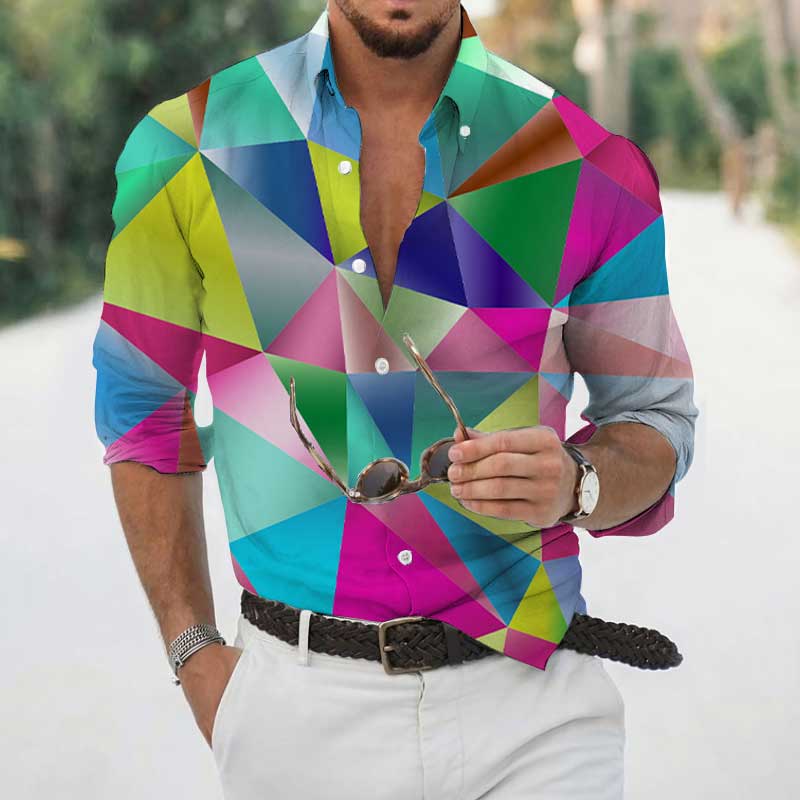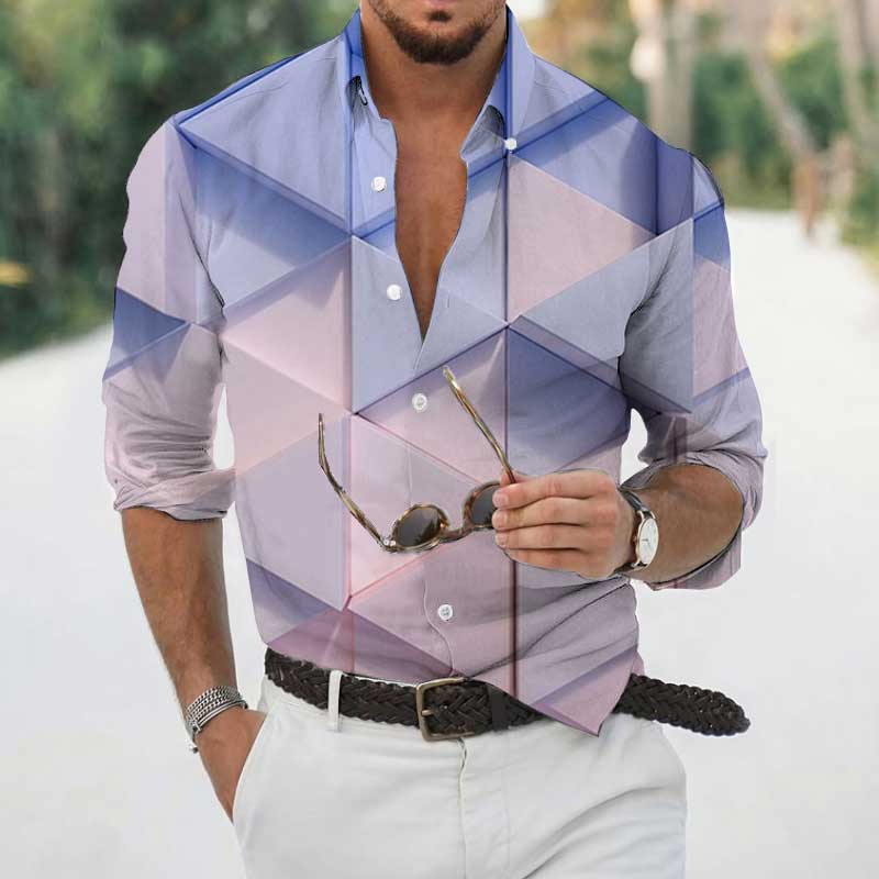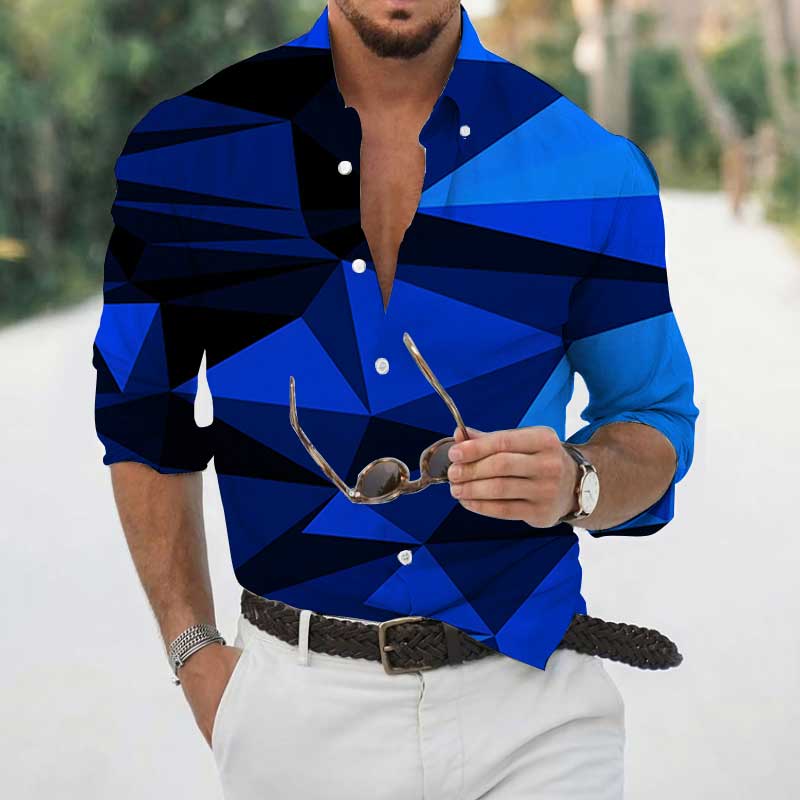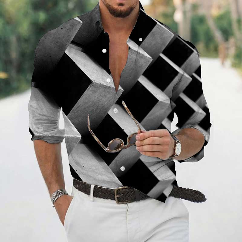 High Spring Autumn Men's Shirts Geometric 3D Printing Long Sleeve Men's Casual T-Shirt Tops Streetwear