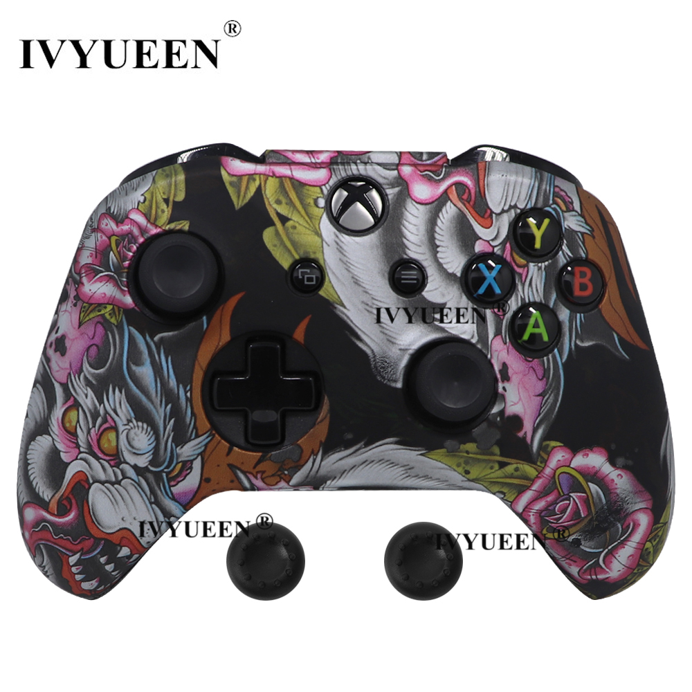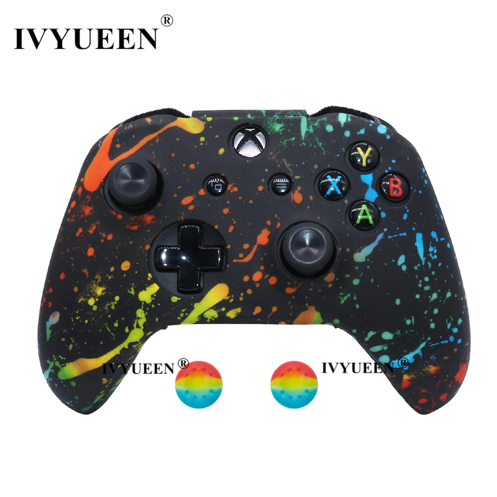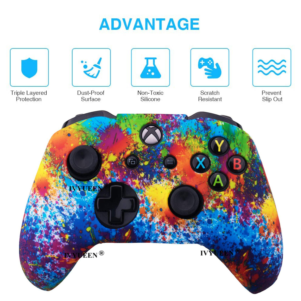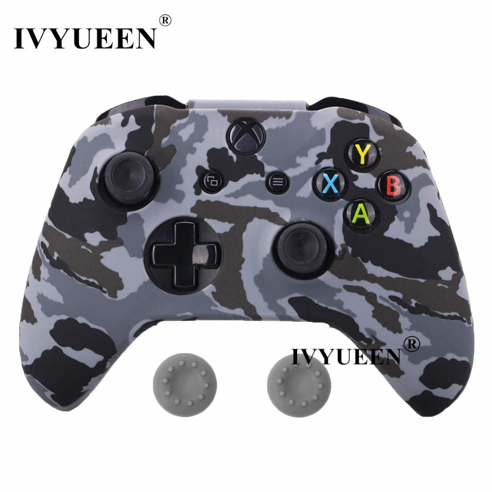 IVYUEEN Silicone Protective Skin Case for XBox One X S Controller Protector Water Transfer Printing Camouflage Cover Grips Caps