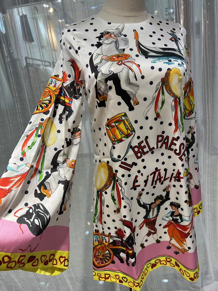 JUNLINNA SWeets Women Dress Summer Autumn High Street Printed Vestids A Crew Neck Long Sleeve Loose Younger Wear