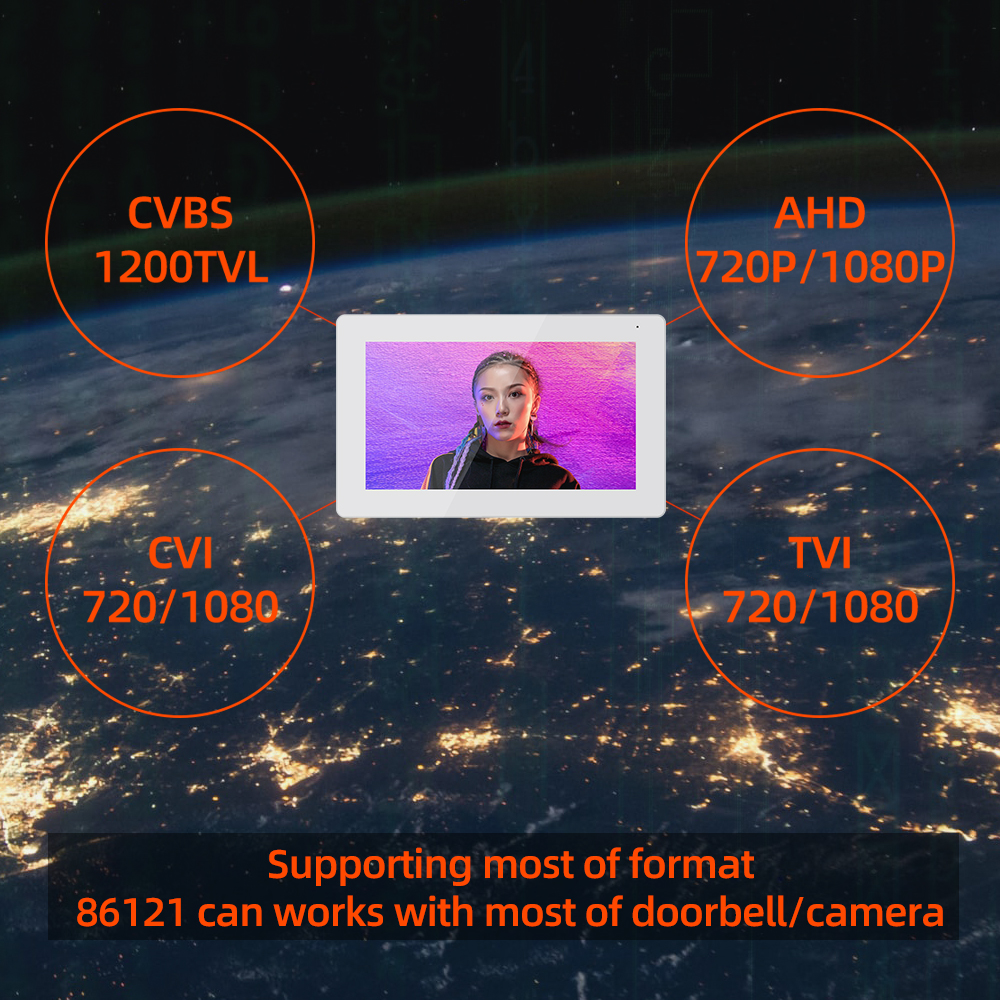 Jeatone Monitor86121 has motion detecting function according to graphic changing,so that it can works with others CVBS/AHD camera module.