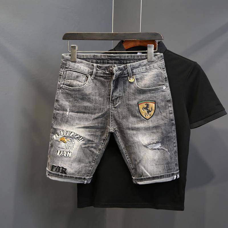Jump drill summer thin section denim shorts men's slim stretch pants all-match trend thin section five-point pants