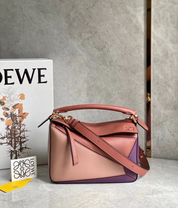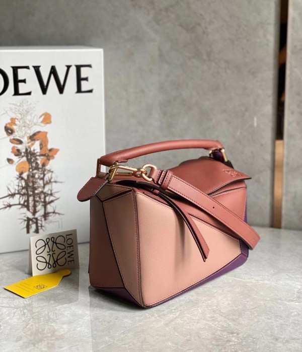 Loewe Puzzle Small Bag In Purple/Caramel/Blossom Calfskin