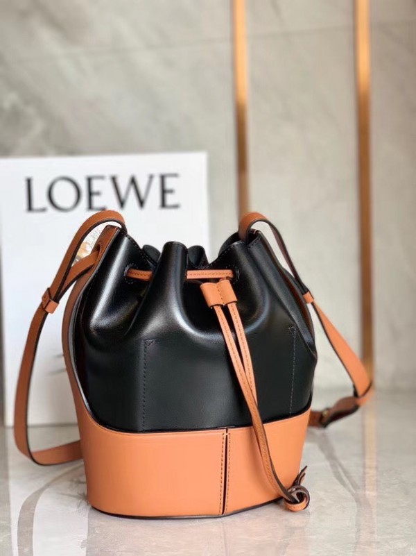 Loewe Small Balloon Bucket Bag In Black/Tan Calfskin