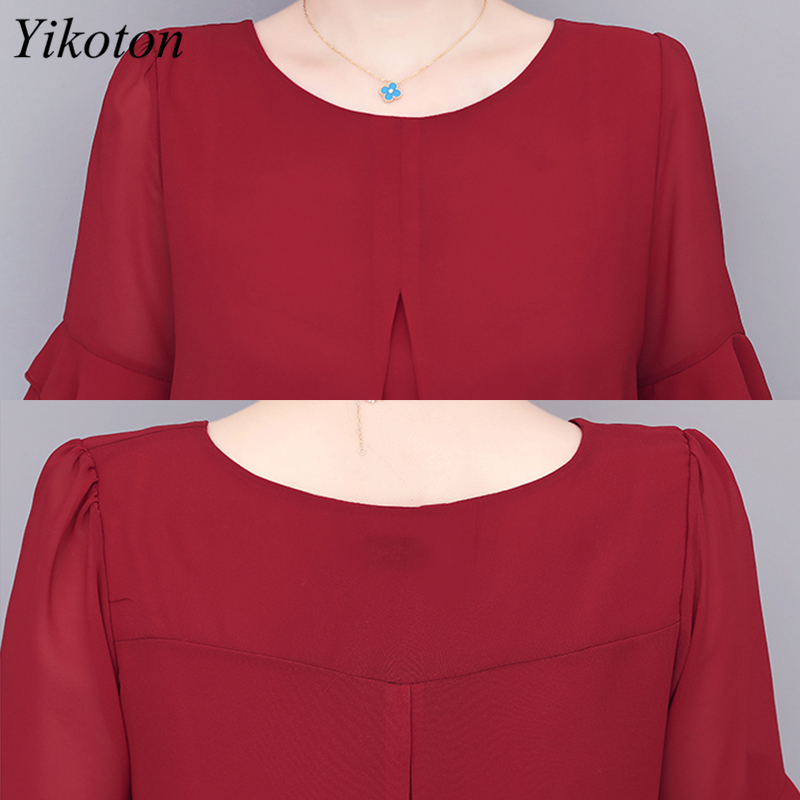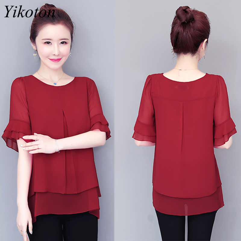 Loose Chiffon Blouses and Shirts Top Woman Casual Summer Ladies Office Work Shirt Petal Sleeve Elegant Blouse Mujeres Blusas