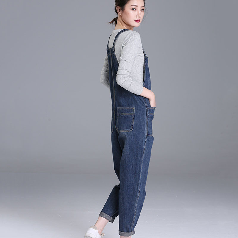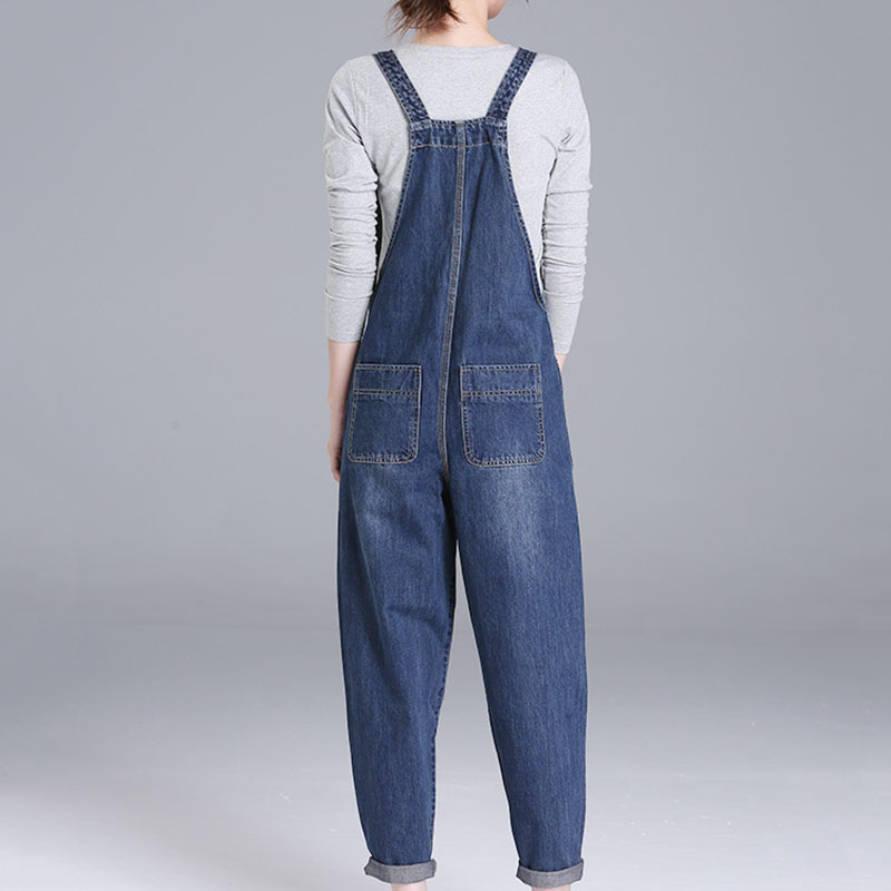 Loose Pocket Jeans Women Autumn Bib Pants Overalls Shoulder Strap Jumpsuit Large Size Denim Jeans Pants