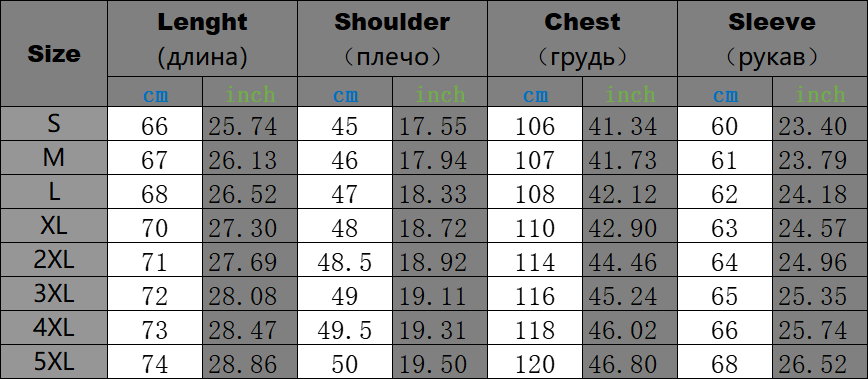 Asian Size : XL,2XL,3XL,4XL,5XL