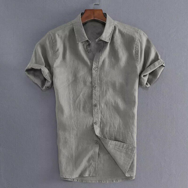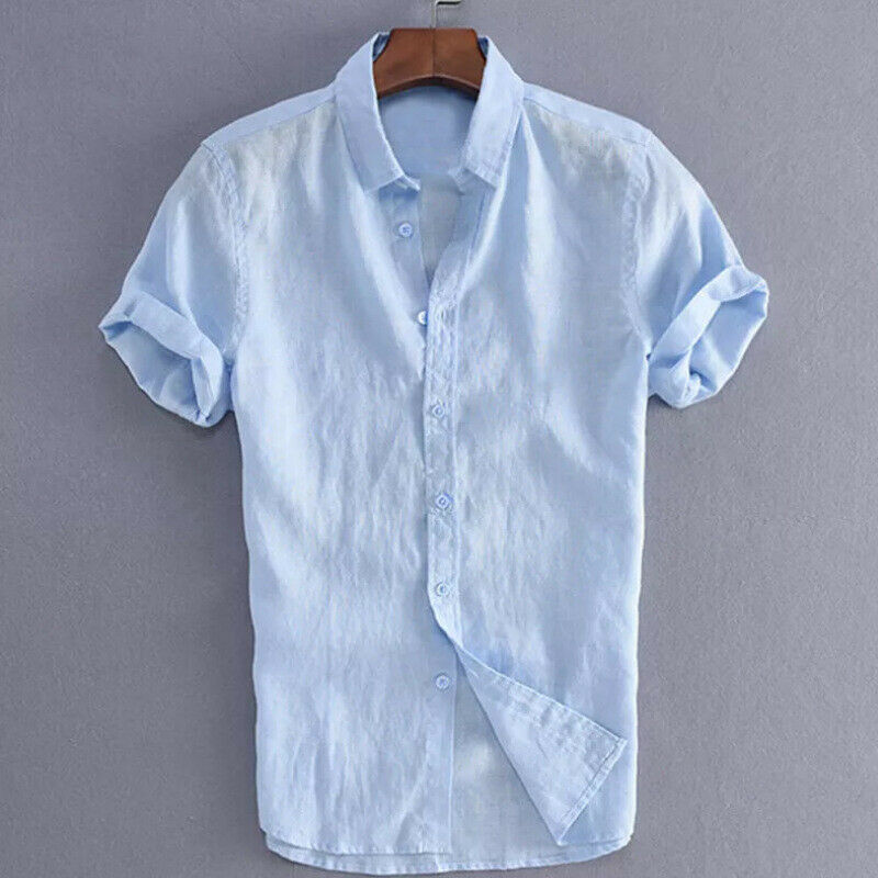 Men's Shirts Linen Short Sleeve Summer Solid Shirts Casual Loose Turn-down Collar Blouse Male Breathable Shirt Chemises homme