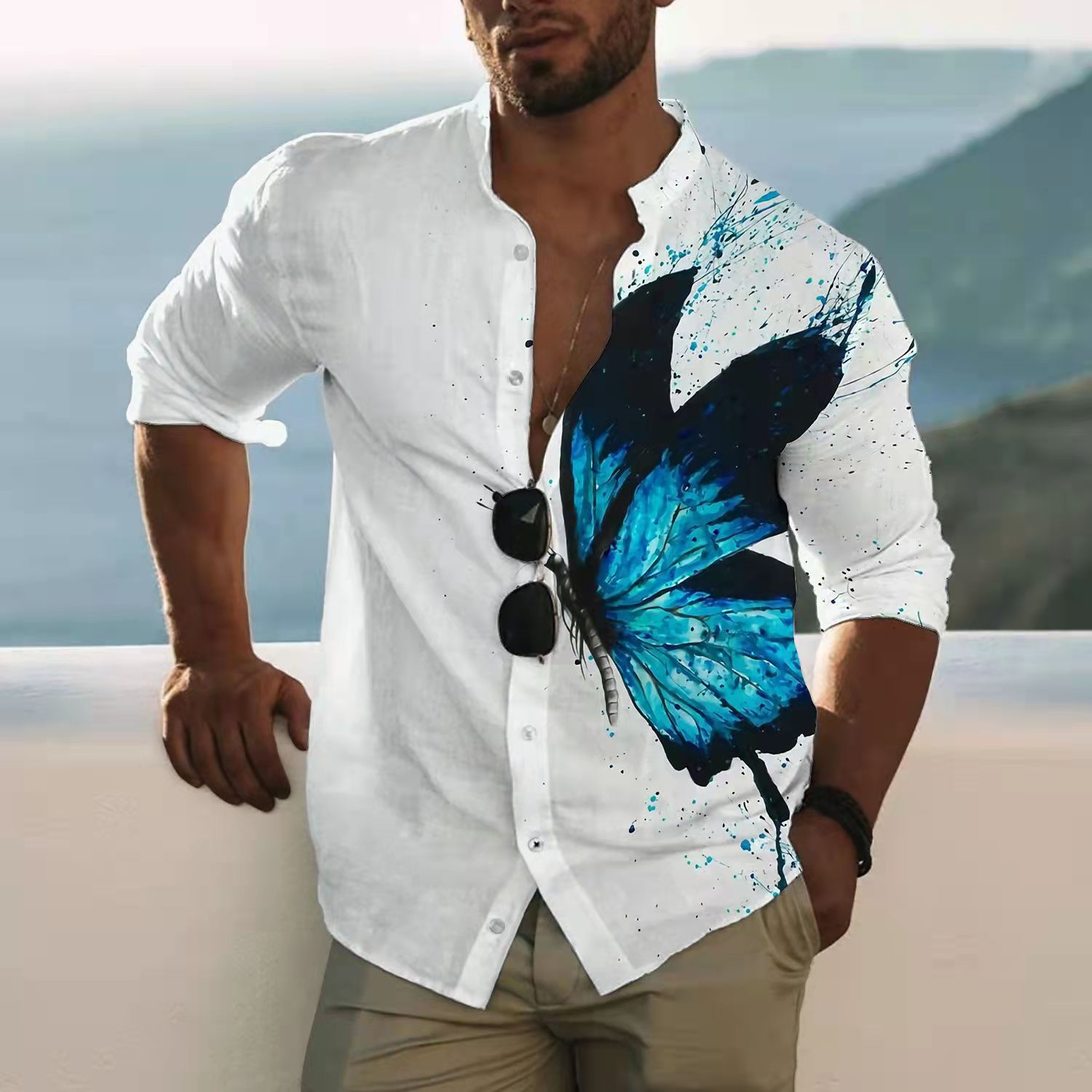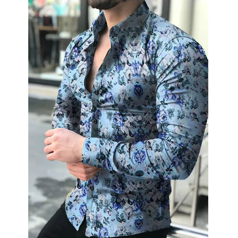 Men's Slim Shirts Spring Autumn Casual Lapel Street Animal 3D Printing Long Sleeve Oversized Shirts Men's Tops