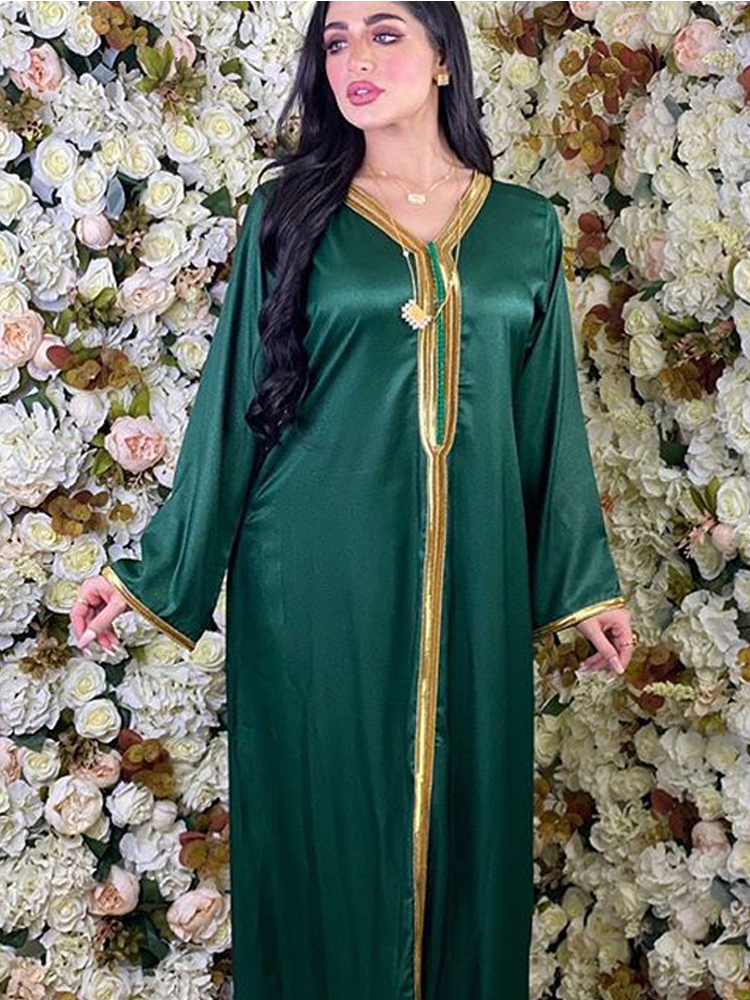 Muslim Women Long Skirt Dubai Turkey Abaya Arab Prayer Costume Islamic Dress Robe Evening Party Green Yellow Kaftan