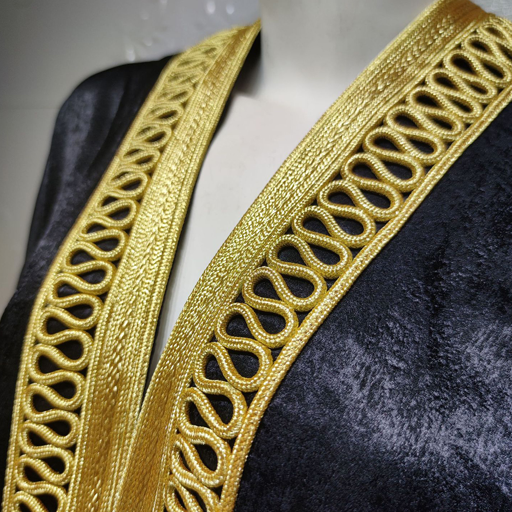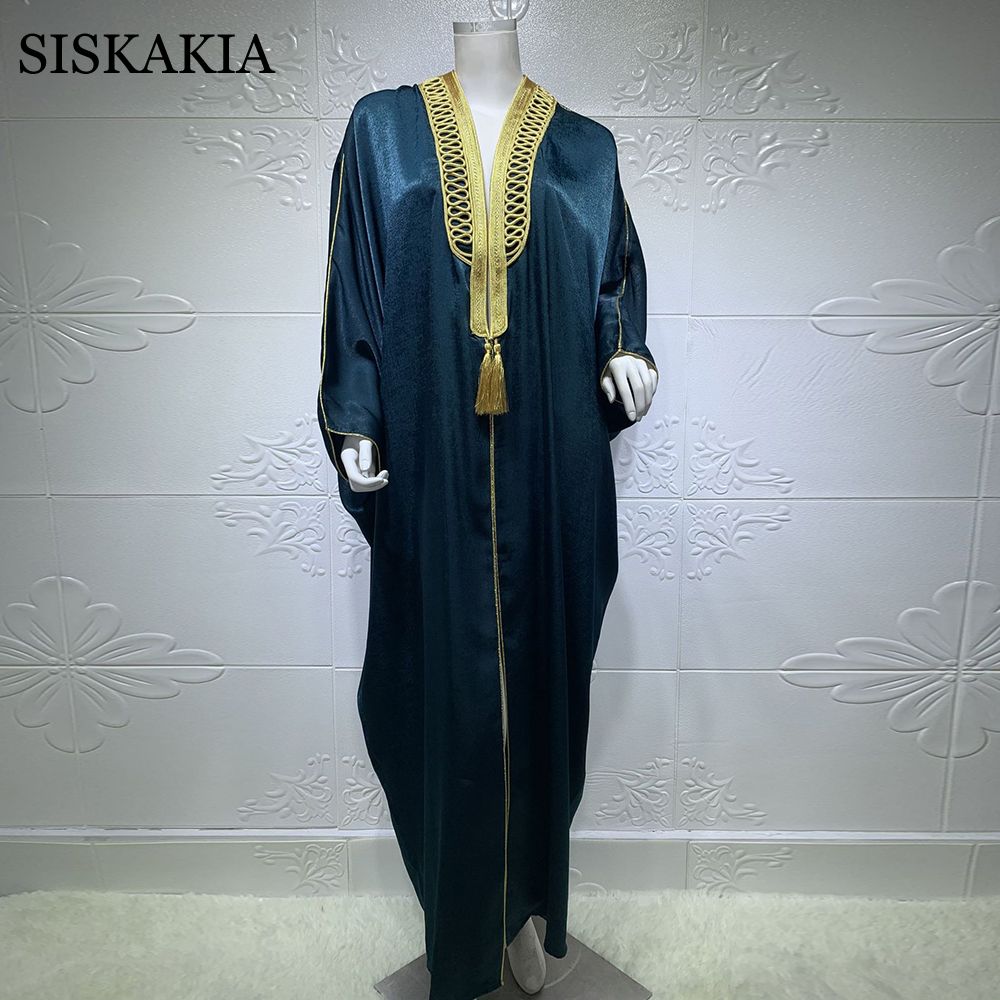Muslim Kimono Abaya Velvet Gold Ribbon Batwing Sleeve Open Front Gown Dress for Women Arabic Moroccan Turkey Caftan