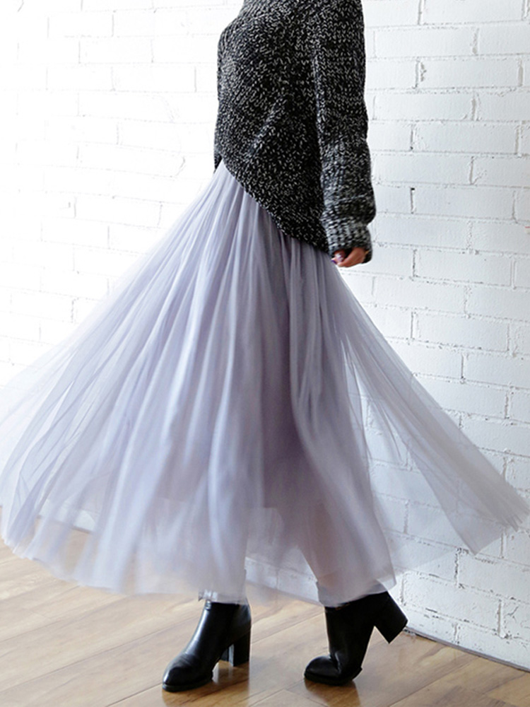 OHRYIYIE Vintage Tulle Skirt Summer Women Elastic High Waist Mesh Skirt Lady Long Pleated Tutu Skirt Female Jupe Longue