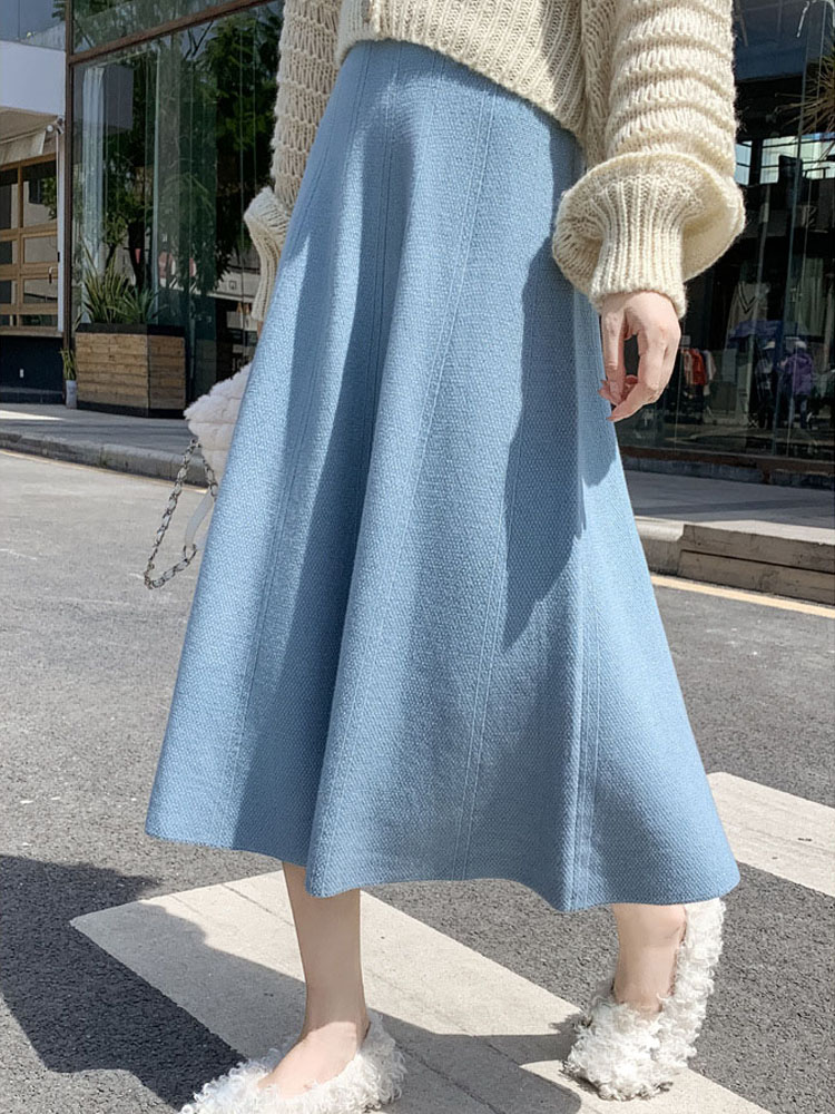 OHRYIYIE Women Thick Knit Skirt Autumn Winter Female High Waist Warm A-line Skirt Women Casual All-match Midi Long Skirt Lady
