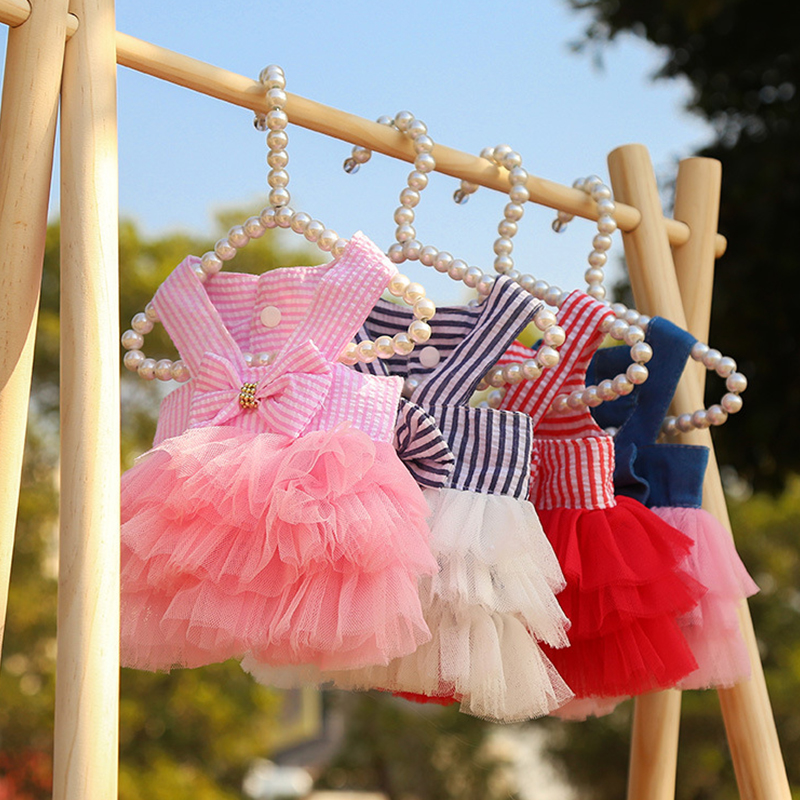 Pet striped sling mesh skirt,polyester material,comfortable and skin-friendly fabric.Princess style,cute and sweet,pets are even more cute and sweet after wearing them.