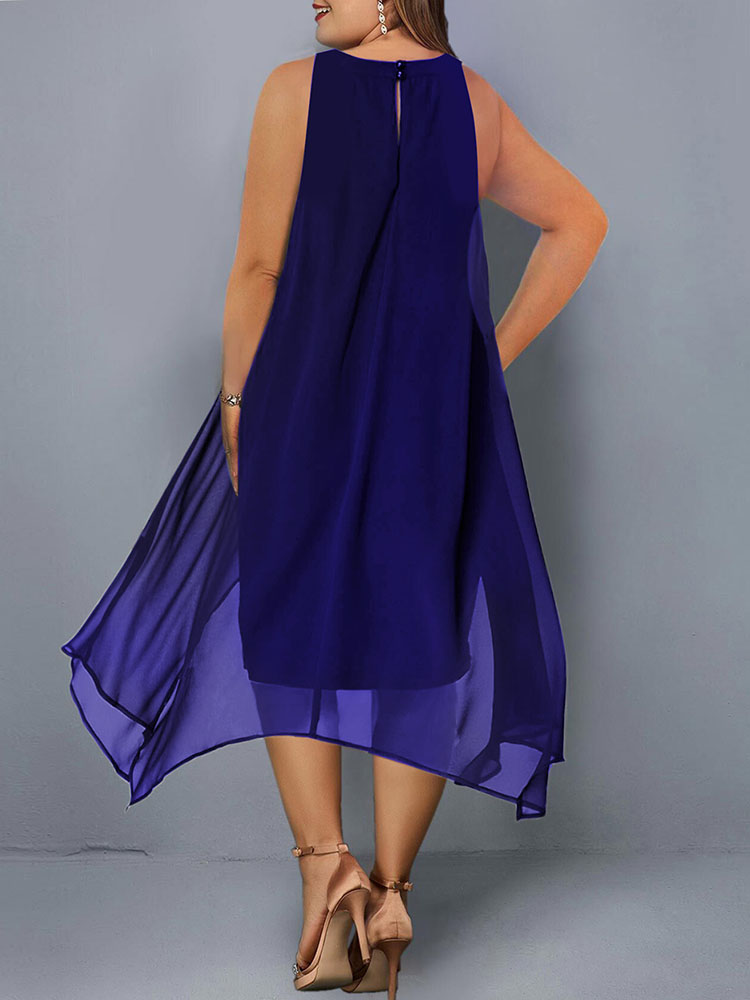 Plus Size Dresses Women Elegant Embroidery Evening Party Dress Summer Blue Mesh Sleeveless Casual Dress Club Outfits