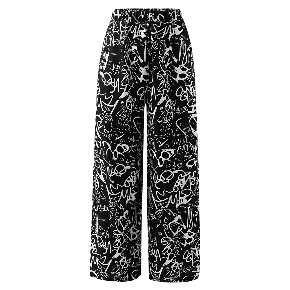 Plus Size Wide Leg Pants Women Spring Autumn Fashion England Style Print Elastic Waist High Street Loose Women's Pants Big Size