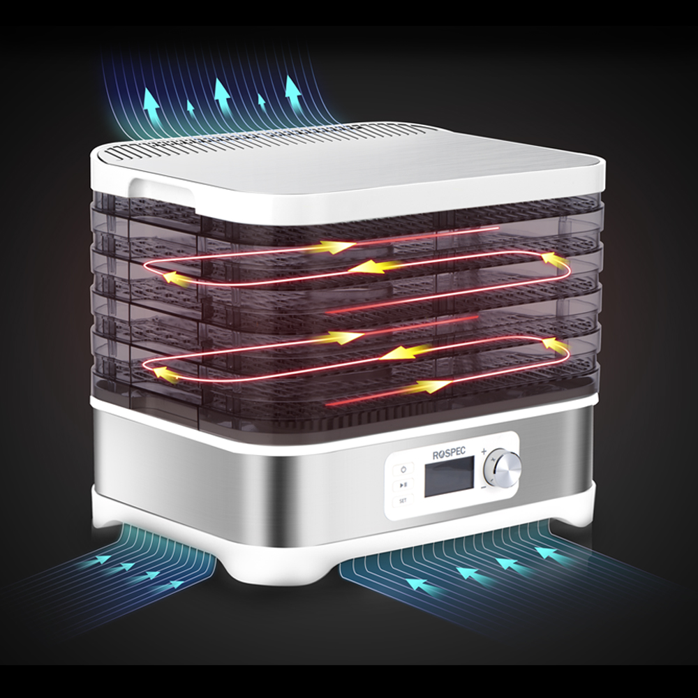 [{"attrName":"Brand Name","attrValue":"ROSPEC"},{"attrName":"Origin","attrValue":"Mainland China"},{"attrName":"Inner Container Material","attrValue":"Stainless steel"},{"attrName":"Inner Container Layer","attrValue":"Five Layers"},{"attrName":"Power","attrValue":"<600W"},{"attrName":"Certification","attrValue":"CE"},{"attrName":"Model Number","attrValue":"FD-1200E"},{"attrName":"Rated Power","attrValue":"400W"},{"attrName":"Digital control panel","attrValue":"LCD Display Screen"},{"attrName":"Capacity","attrValue":"10L"},{"attrName":"Timer adjust","attrValue":"1 - 24 hours"},{"attrName":"Electric voltage","attrValue":"220 - 240V"}]