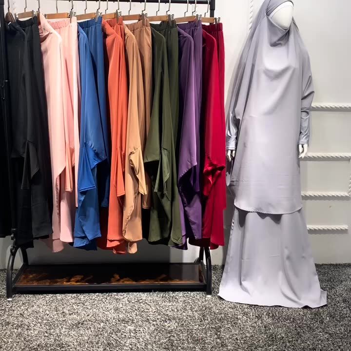 Ramadan 2 Piece Muslim Prayer Garment Sets Women Hijab Abaya Jilbab Maxi Dress Khimar Burqa Islamic Clothing Overhead Arab Robe