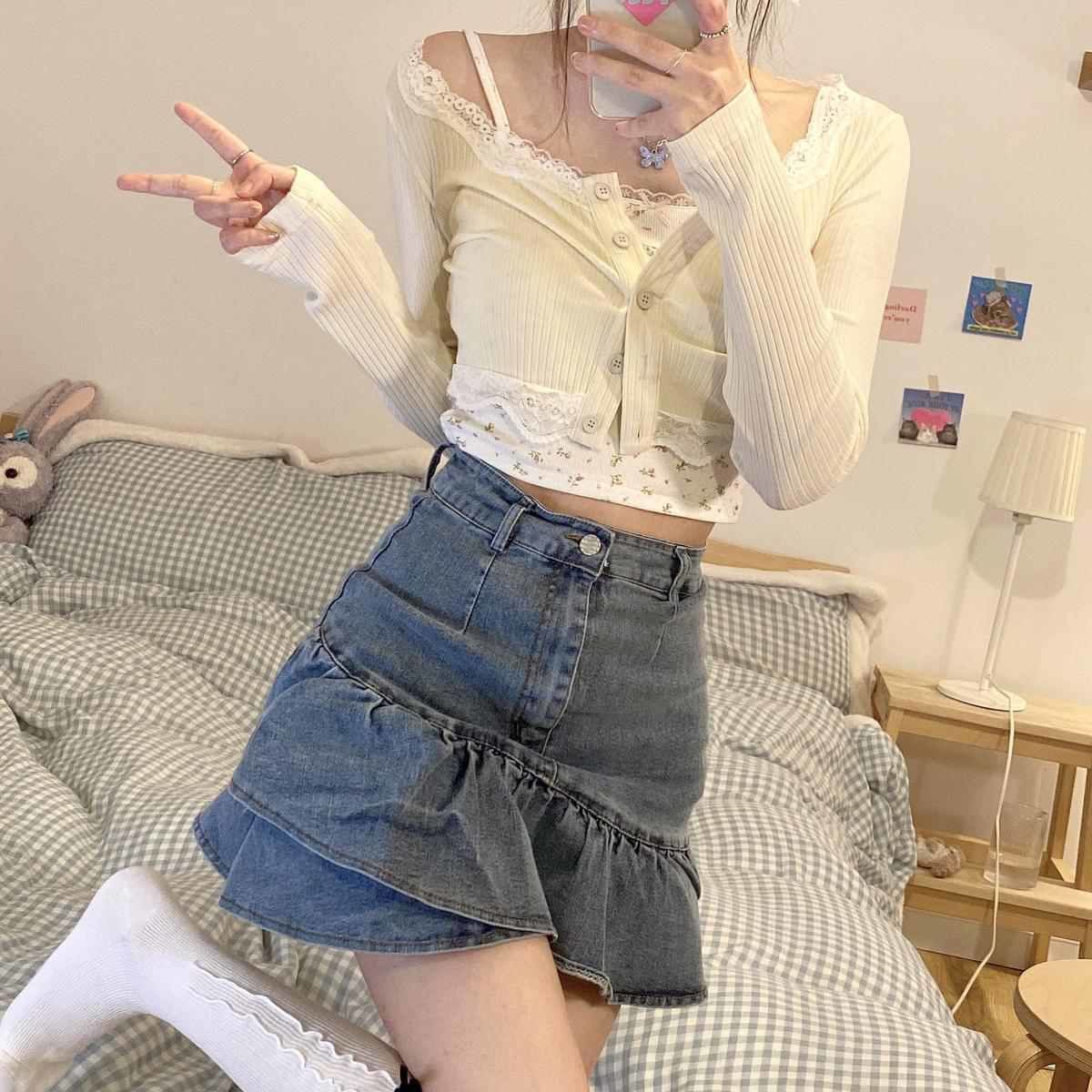 Sets Women Fresh Chic Summer Female Two Piece Single Breasted Cardigan Sexy Girlish Crops Camisole Tender Streetwear Holiday New