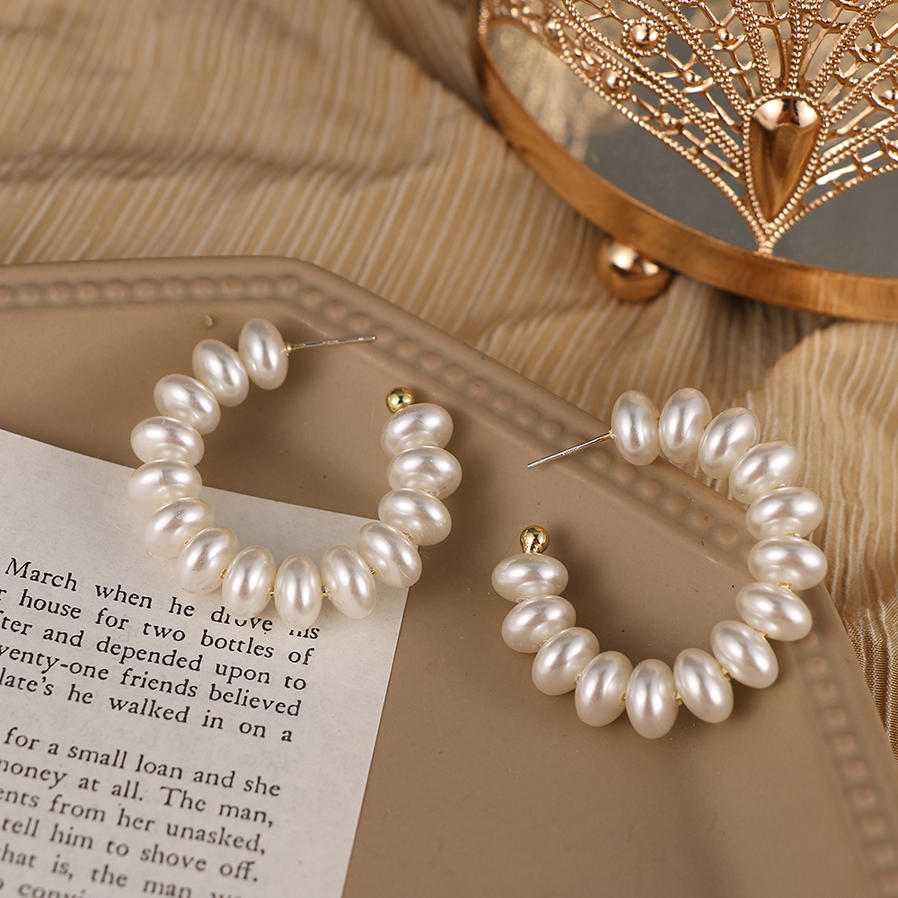 Simple Plain Gold Color Metal Pearl Hoop Earrings Big Circle Hoops Statement Earrings for Women Wedding Gifts