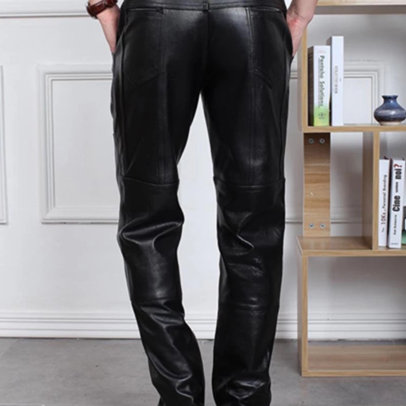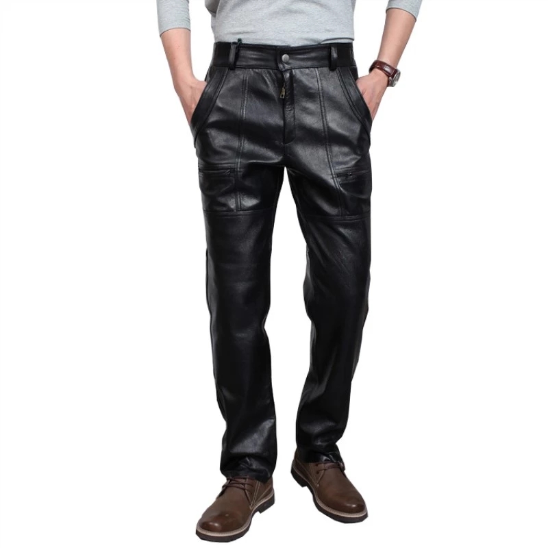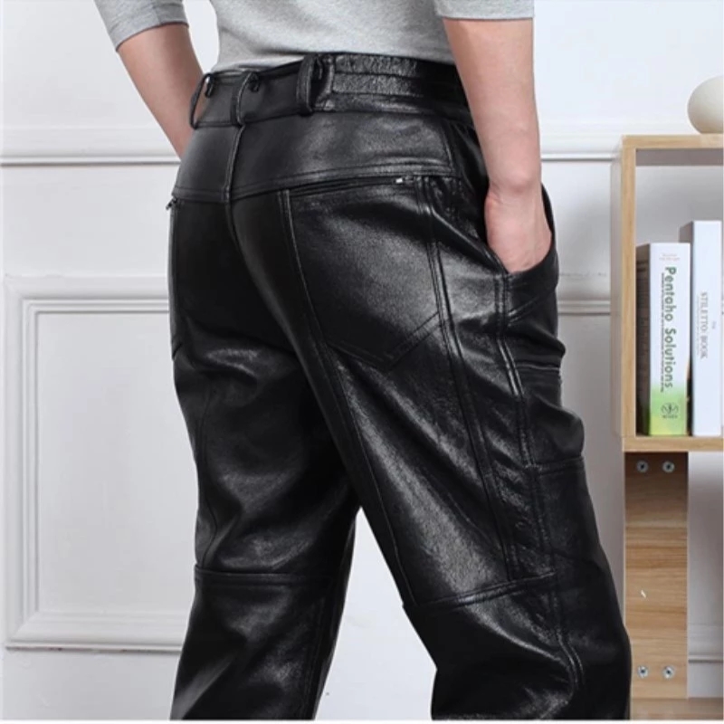 Straight Genuine Leather Pants Autumn Winter Men Large Size Trouser Thickening Motorcycle Pants Men Loose Windproof Leather Pant
