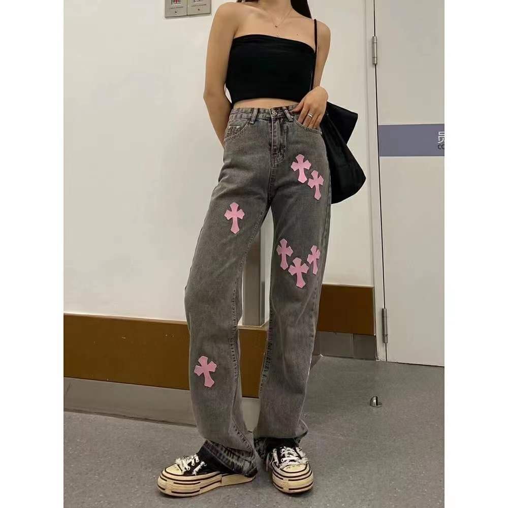 Streetwear Versatile Denim Trousers Cross Woman 4XL Size Y2k Straight Baggy Pants Leg Jeans High Waist Jeans