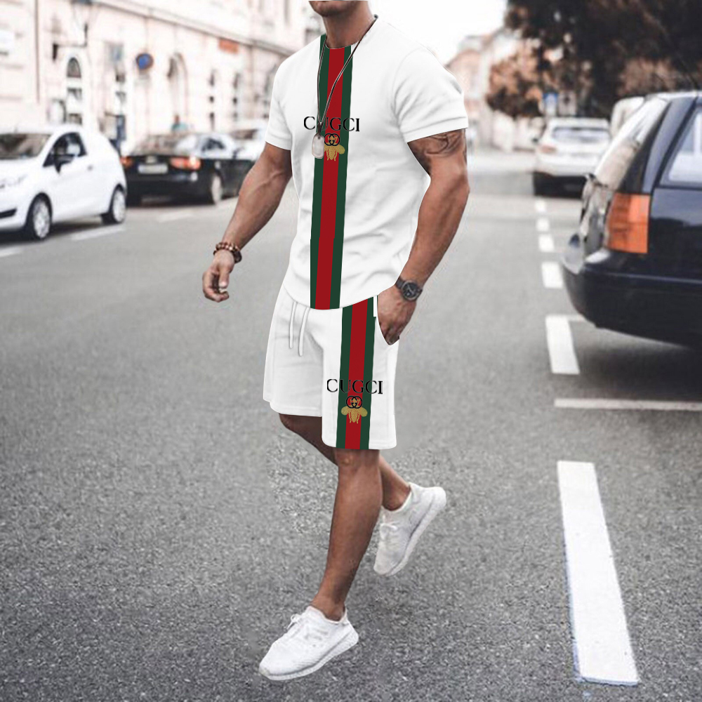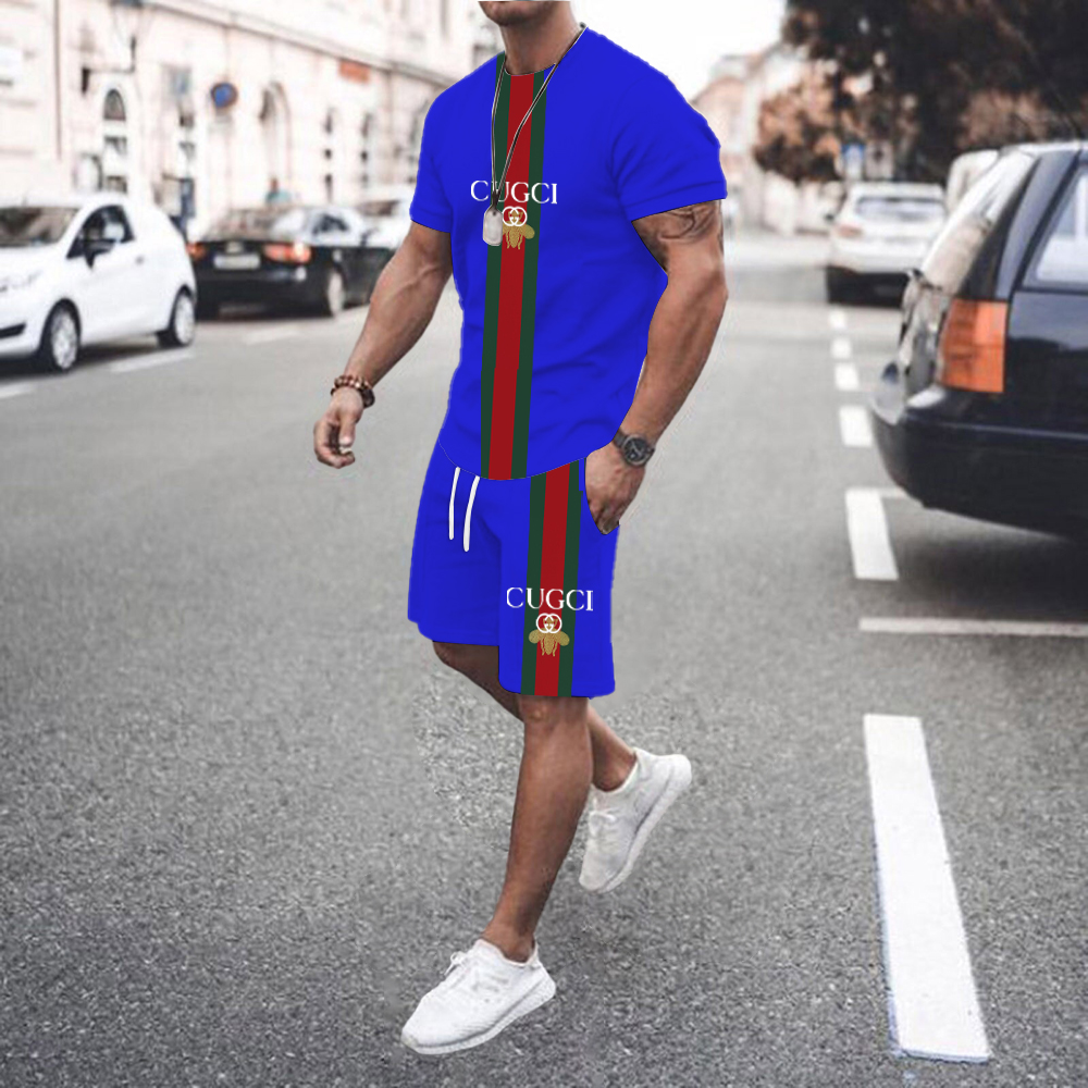 Summer Men Sets Men's Casual Sportswear Suit Oversized Sports Suit Short-sleeved T-shirt + Shorts 2-piece Set