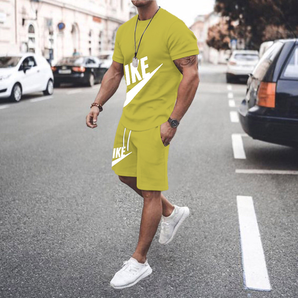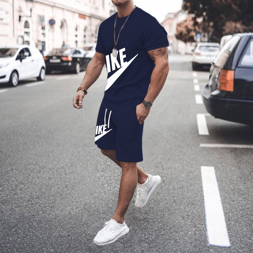 Summer Men's Fitness Men's Casual Sportswear Suit Oversized Sports Suit Short-Sleeved T-Shirt + Shorts 2-Piece Se