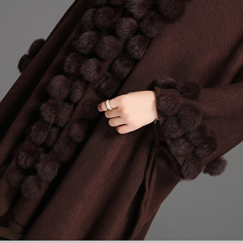 Women Rabbit Fur Poncho Shawl Coat Long