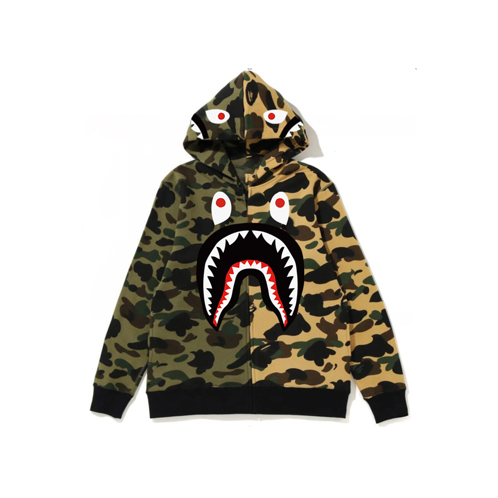 Trendy Hoodie Winter Camouflage Couple Wear Hoodie Casual Cardigan Hooded Bapes Shark Jacket Street Style Men's Jacket