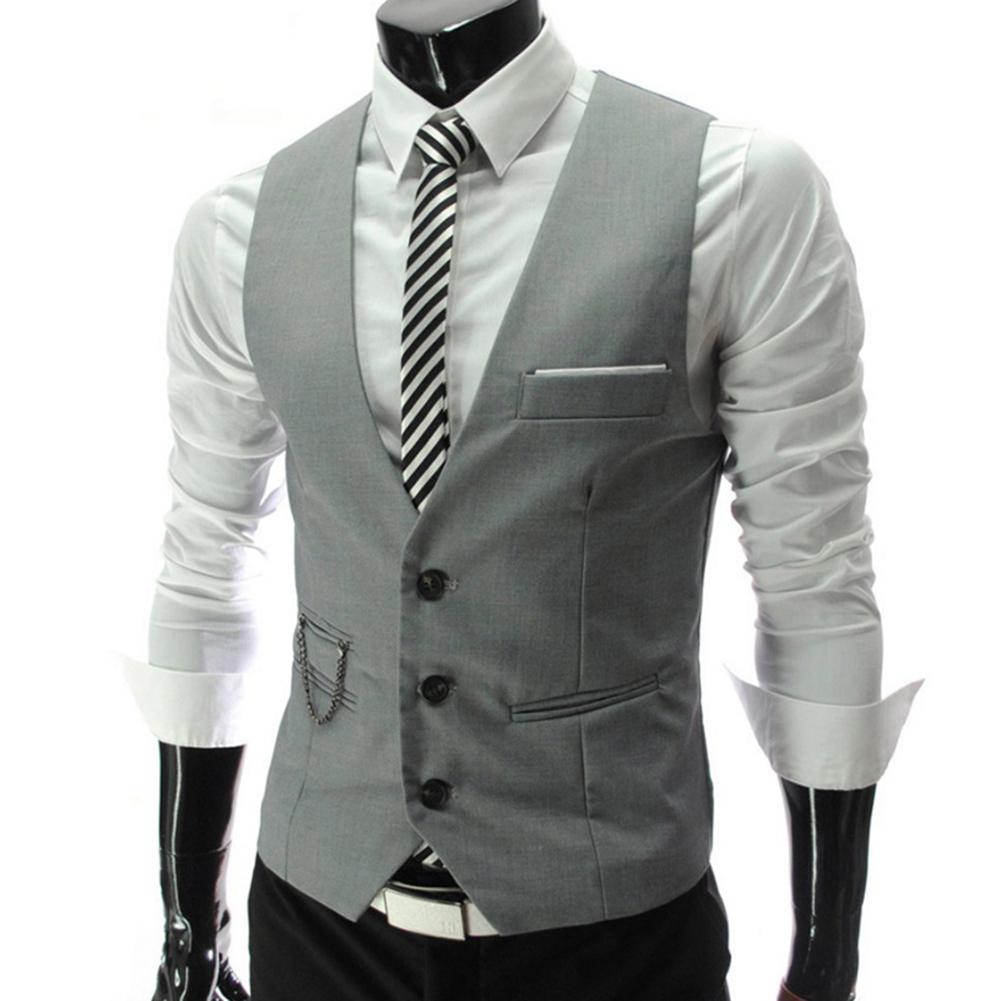 Fashion Men Waistcoat Vest Solid Color V Neck Sleeveless Buttons Blazer Plus Size Formal Business Jacket chalecos para hombre