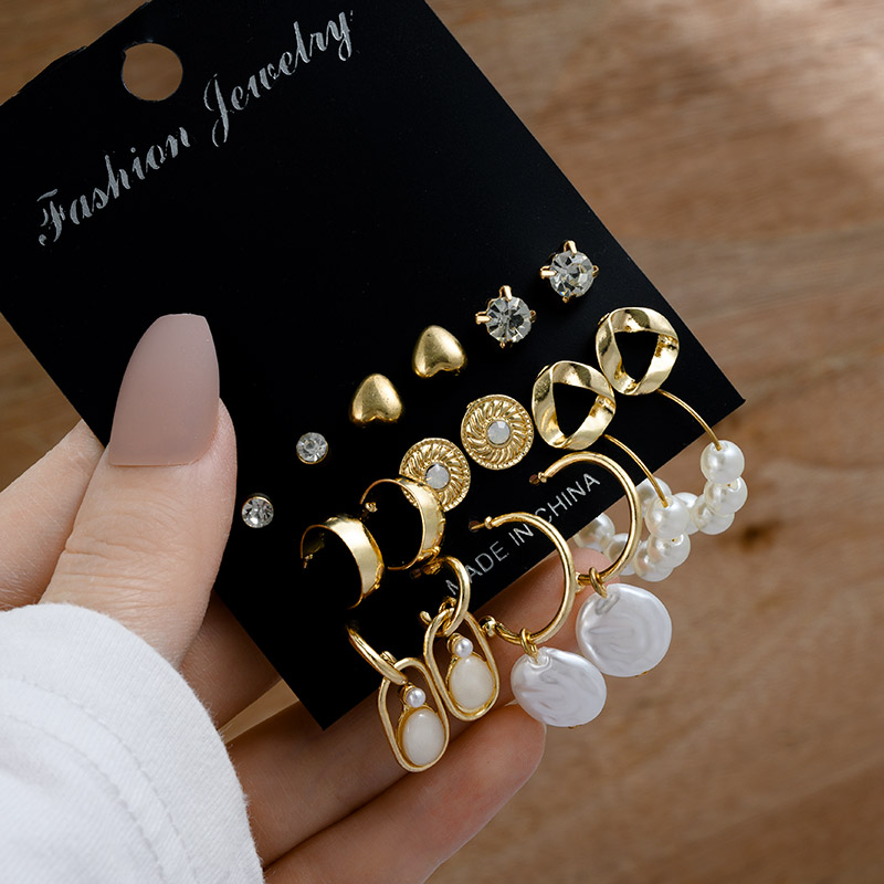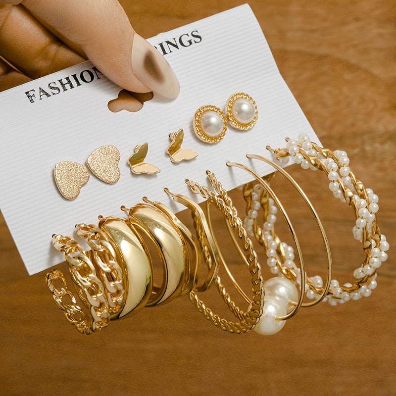 Vintage Gold Geometric Women's Earrings Set Pearl Circle Hoop Earrings For Women Brincos Trend Female Jewelry Gifts