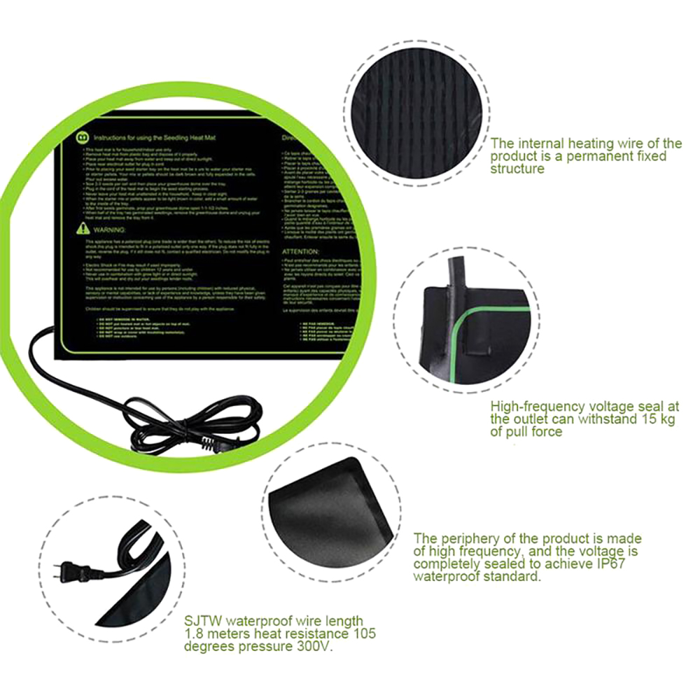 The temperature is about 25 degrees, which is suitable for plant germination and rooting.Part of contact heat conduction (the heating plate can contact the heat of the nursery pot to conduct);